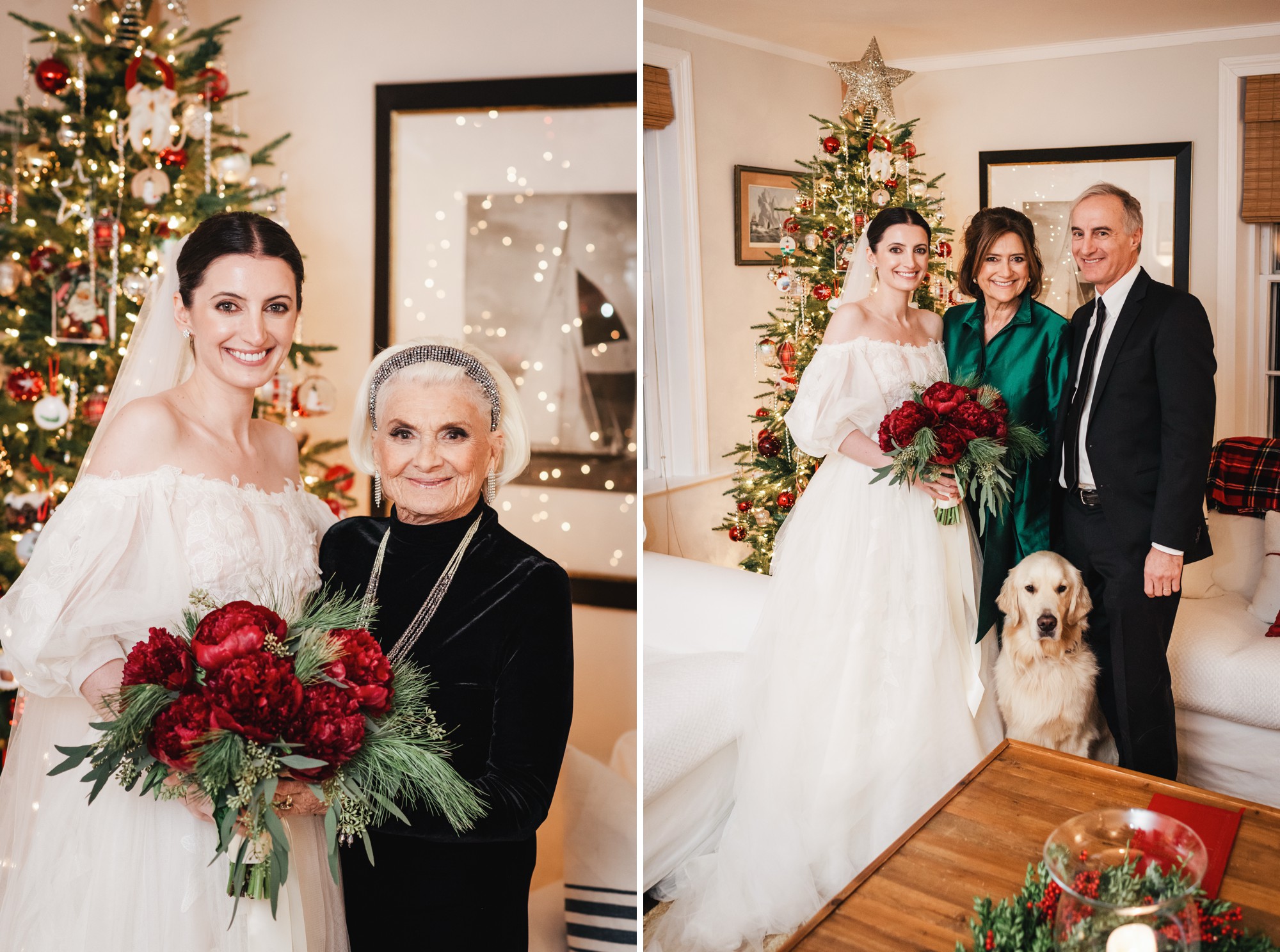 With so much love surrounding them, you’d never think Nell & Billy’s wedding was attended only by immediate family. It felt so much bigger, so full. Getting married on Nantucket in December, they chose to embrace a red, white and green Christmas theme. From Nell’s bold red bouquet to the decorations around her parents’ home for the reception, and every little detail in between, their day was so chic and classic.