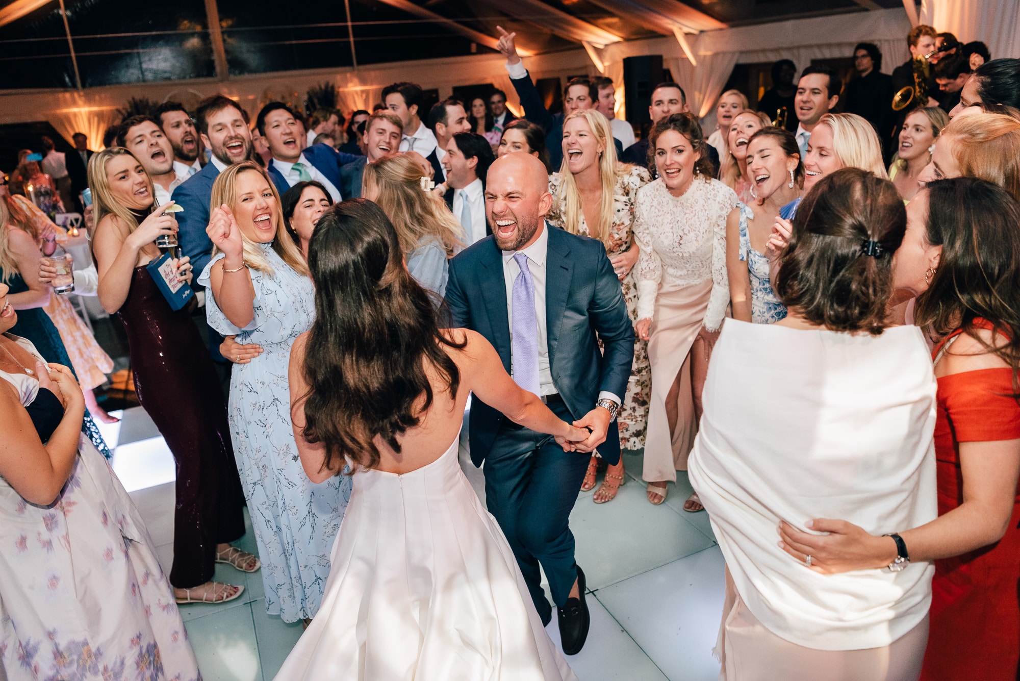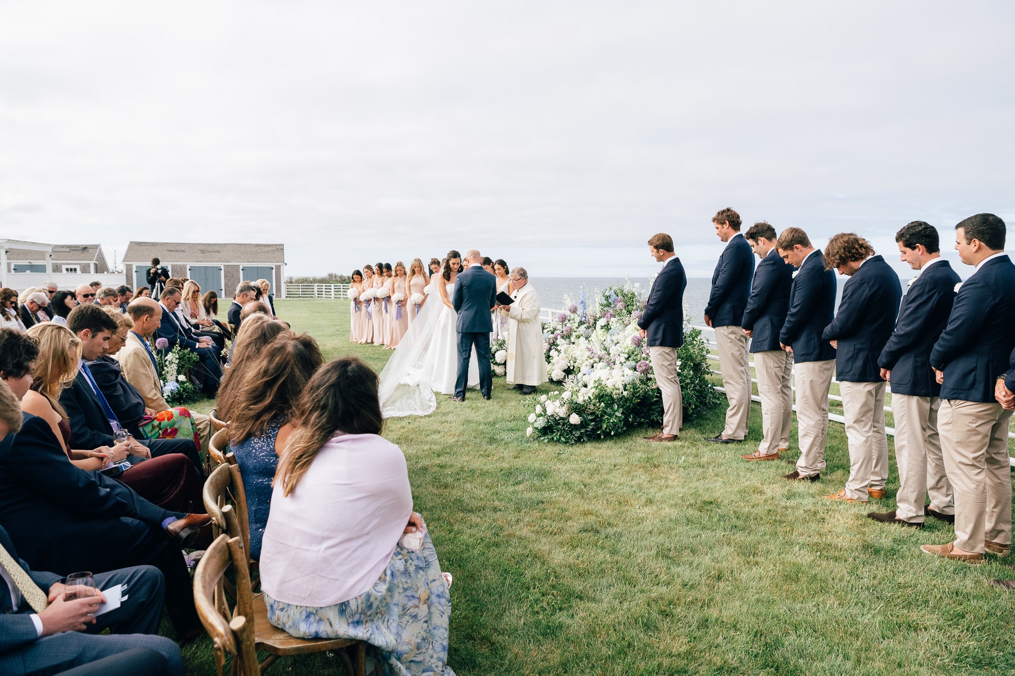 Ceremony Venue: Sankaty Head Beach Club | Florist: Winston Flowers | Stationery: Papellerie | Bridal Hair & Makeup: RJ Miller Salon | Bridal Gown: Carolina Herrera | Groomswear: Zegna | Groomsmen: Bonobos | Cake: Cake Nantucket | Rentals: The Event Rental Co. | Video: SP Films