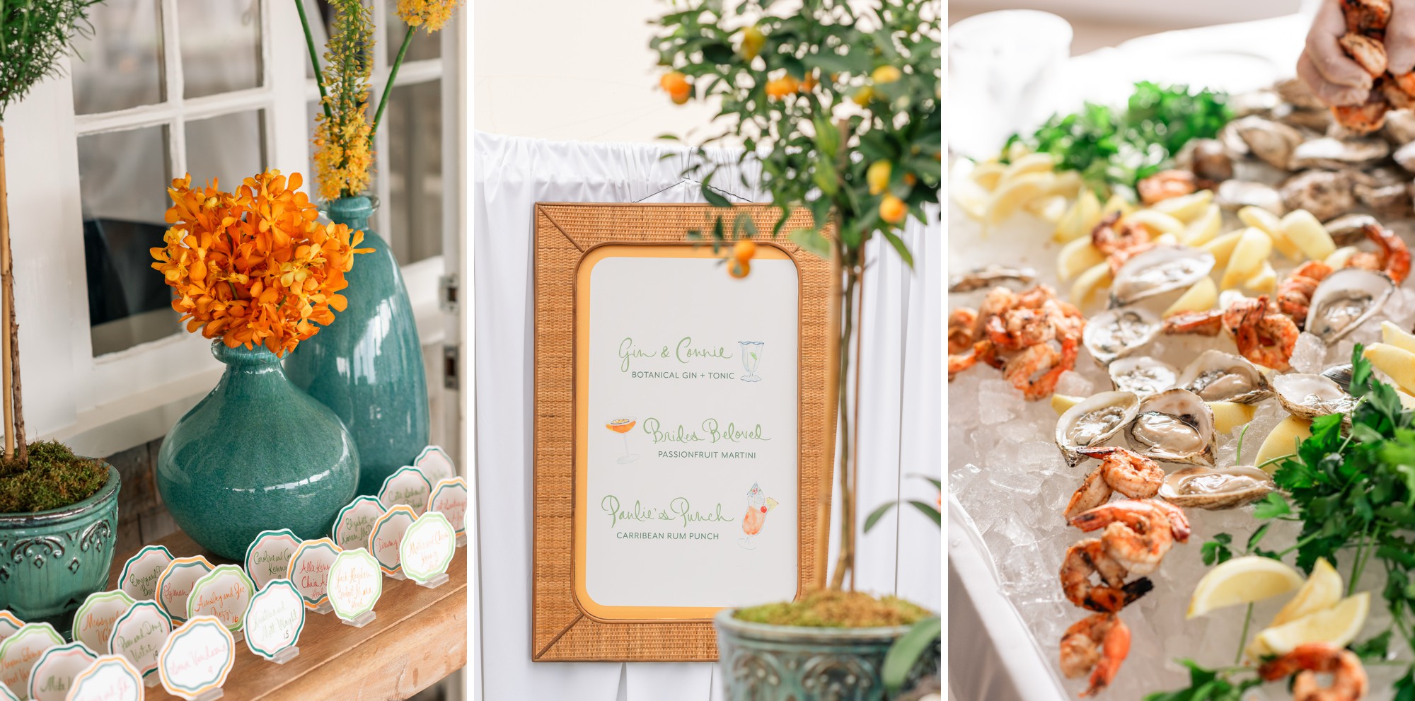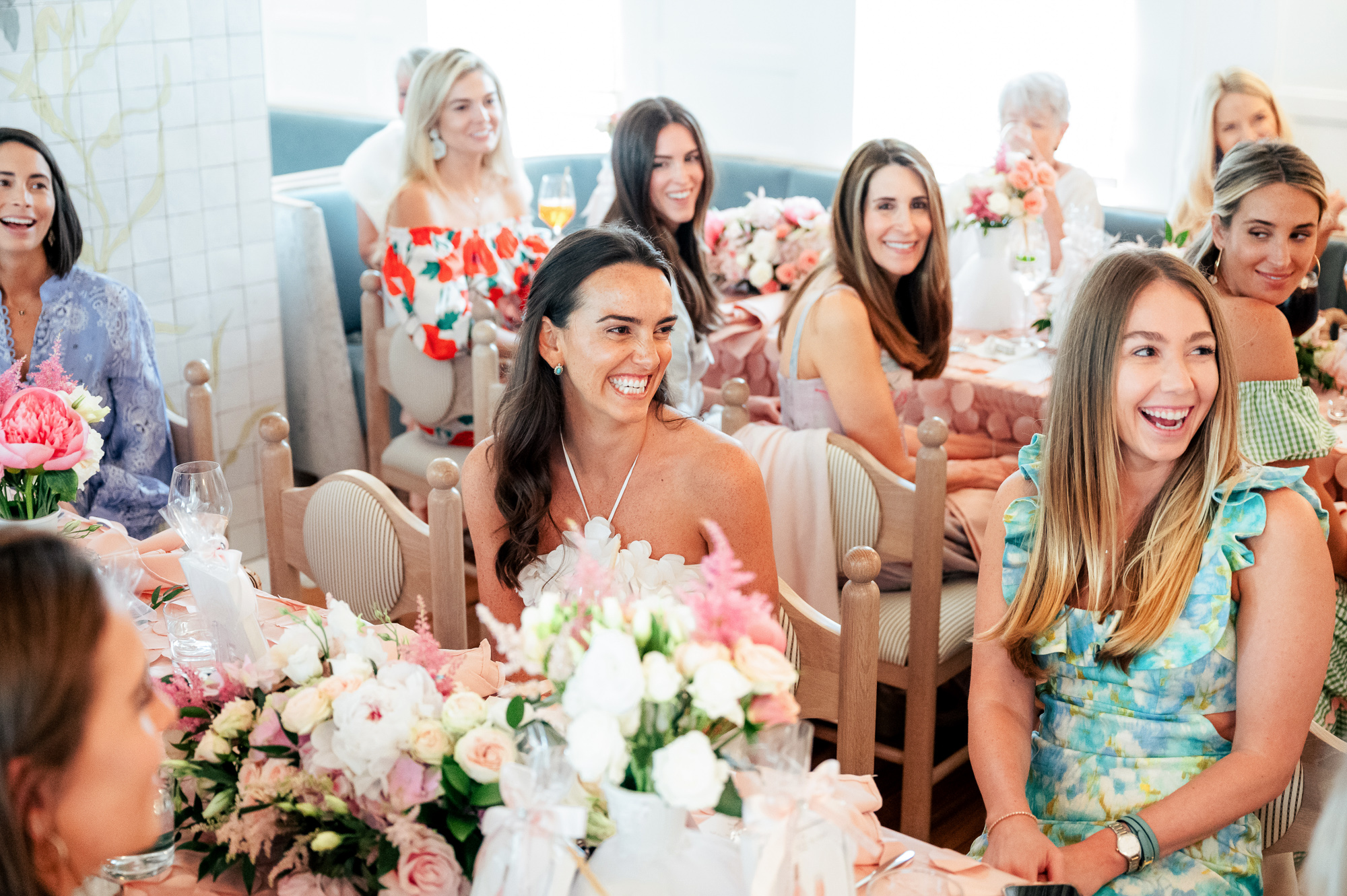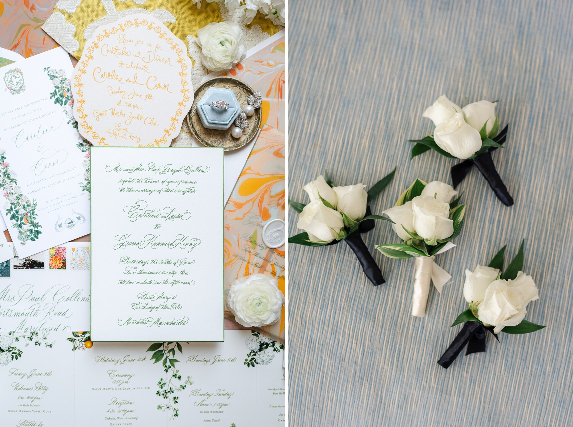 The entire, gorgeous June weekend was colorfully designed. From the citrusy colors of the welcome party, the girly pink bridal luncheon, the quintessential Nantucket blue rehearsal dinner, to the garden party inspired wedding day and neon accented after party, this weekend was pure eye candy.