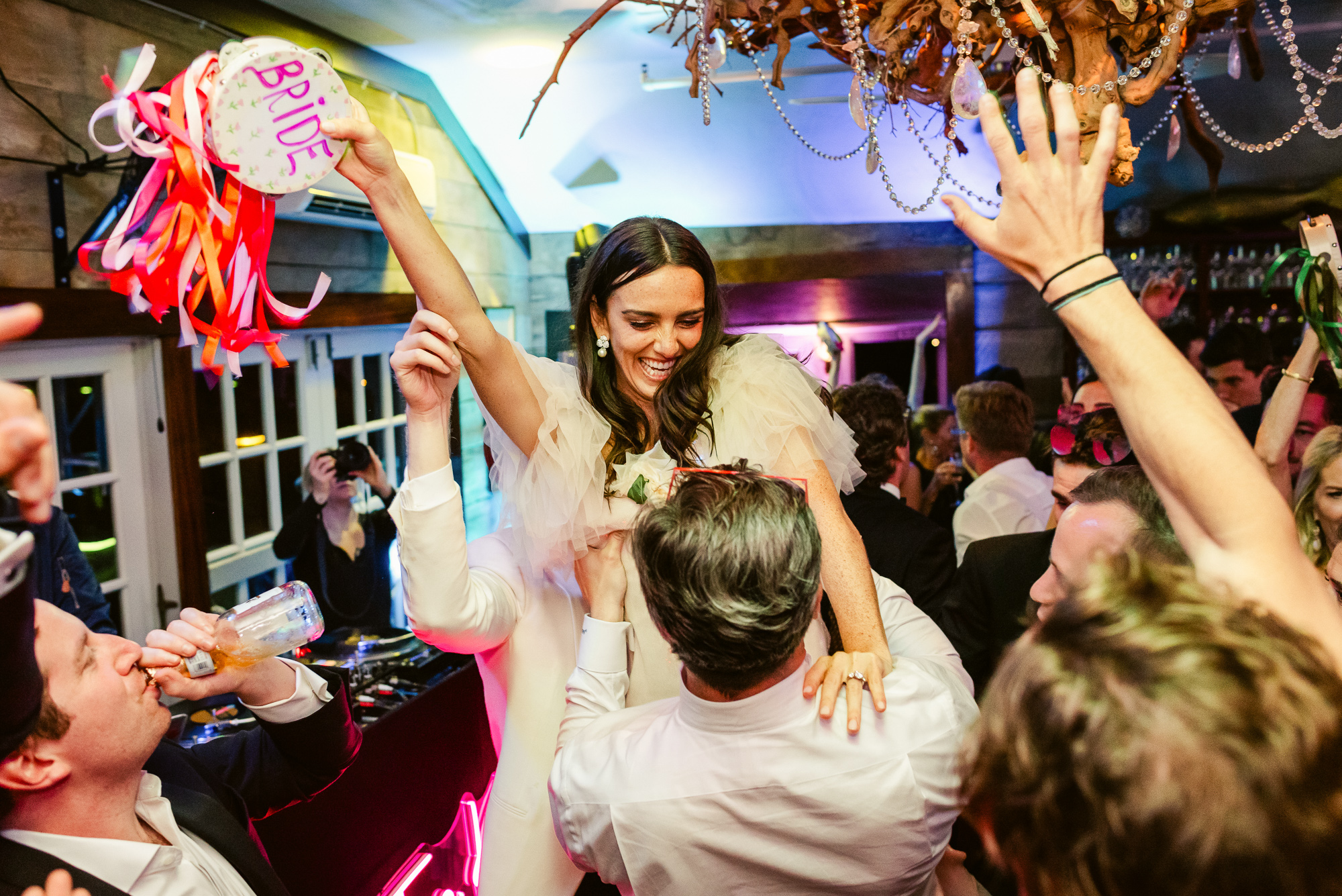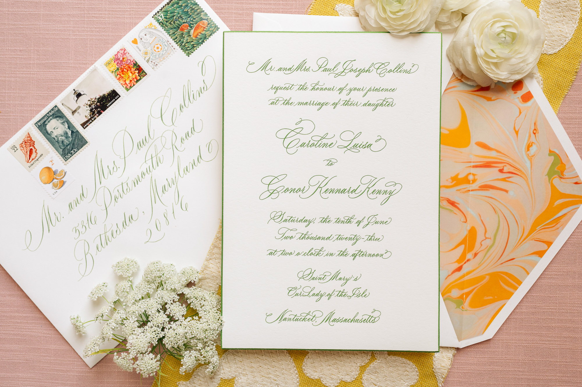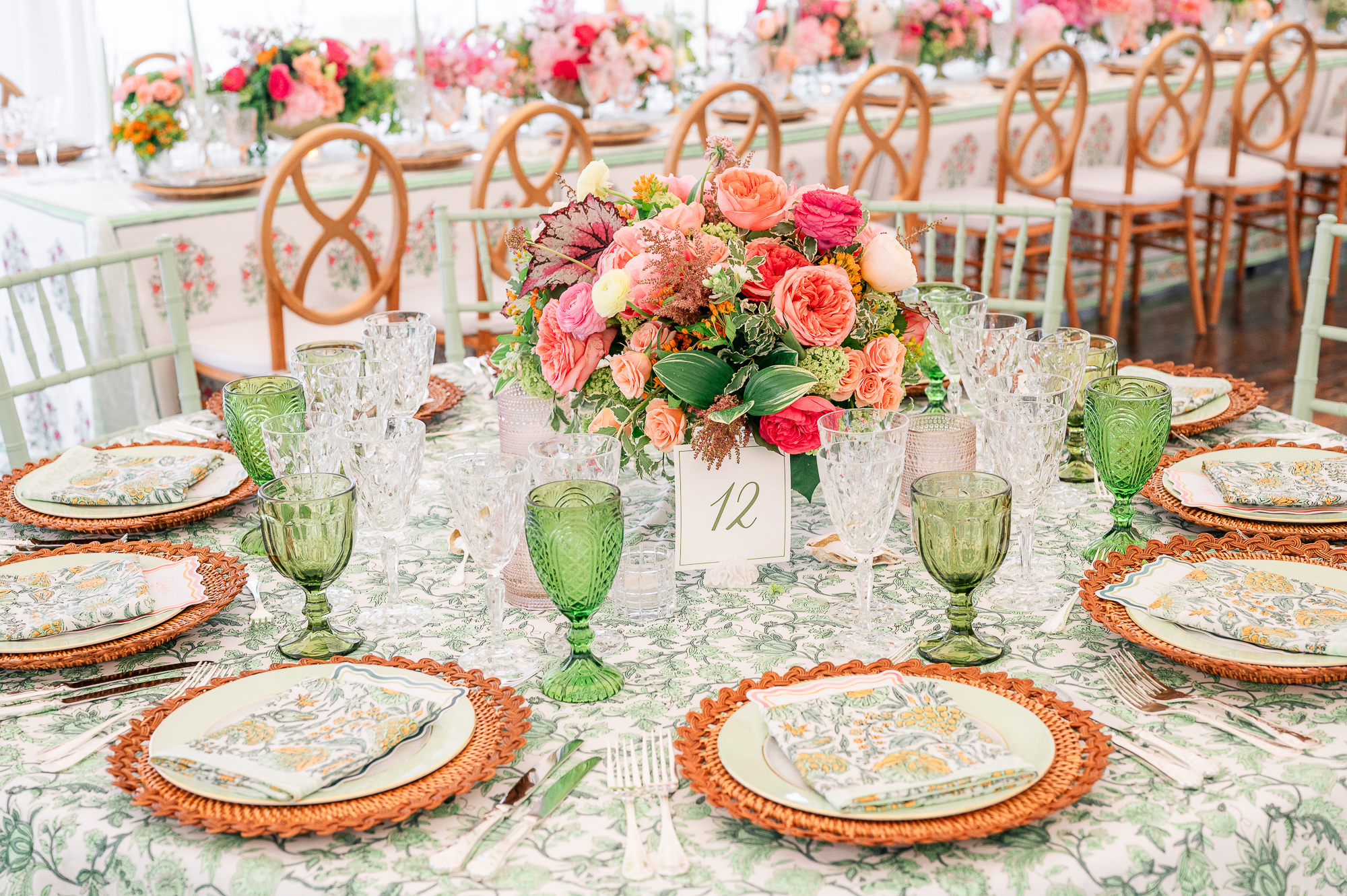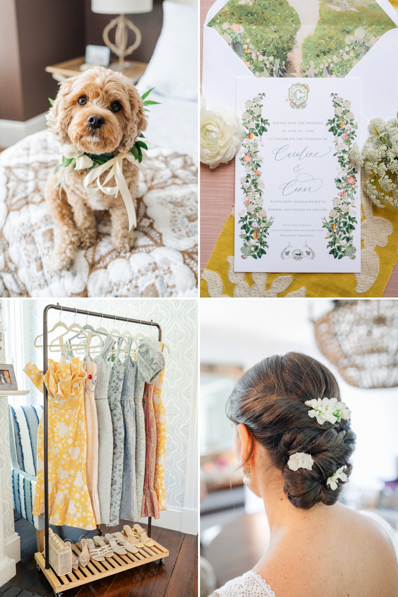 The entire, gorgeous June weekend was colorfully designed. From the citrusy colors of the welcome party, the girly pink bridal luncheon, the quintessential Nantucket blue rehearsal dinner, to the garden party inspired wedding day and neon accented after party, this weekend was pure eye candy.