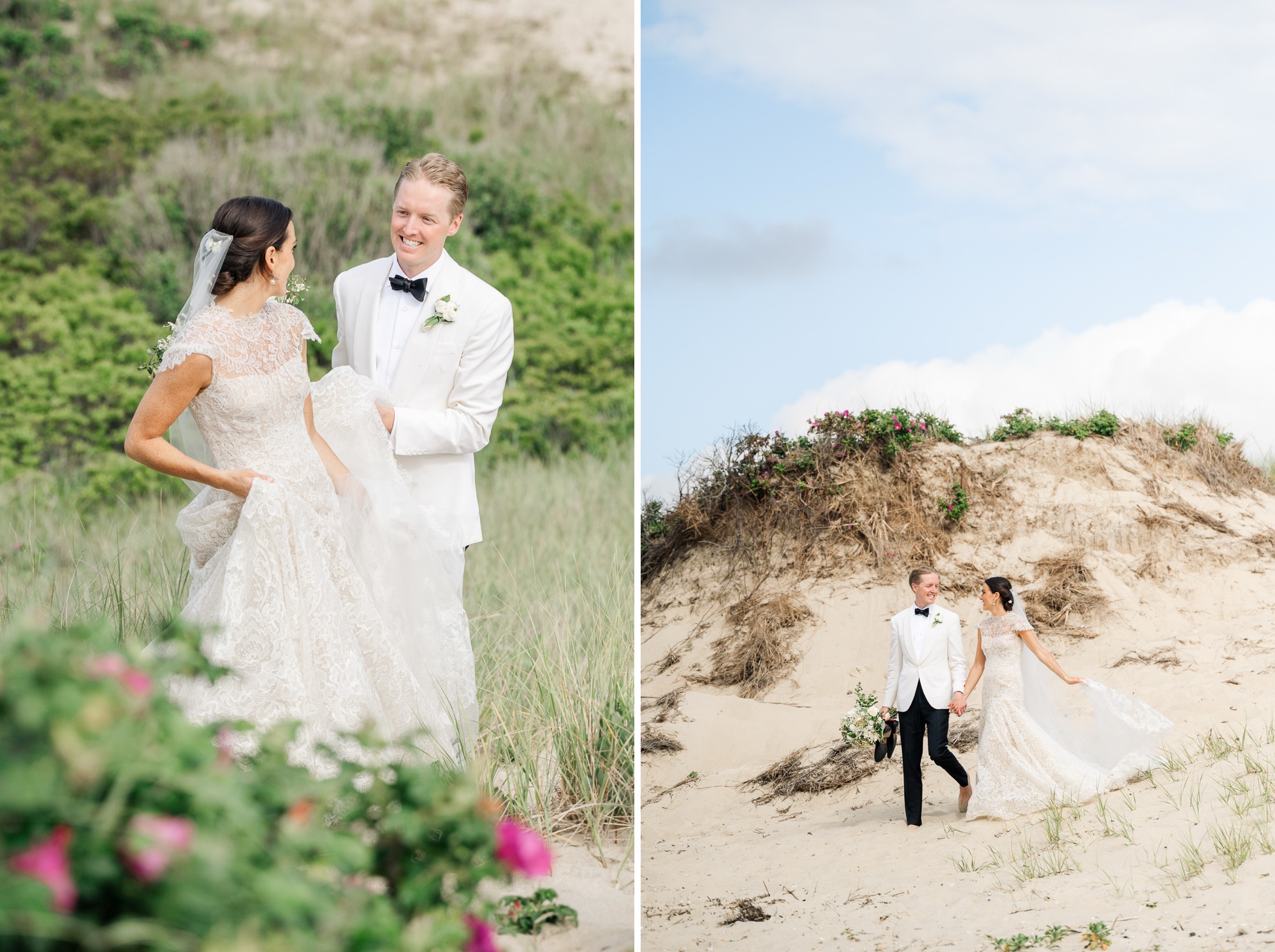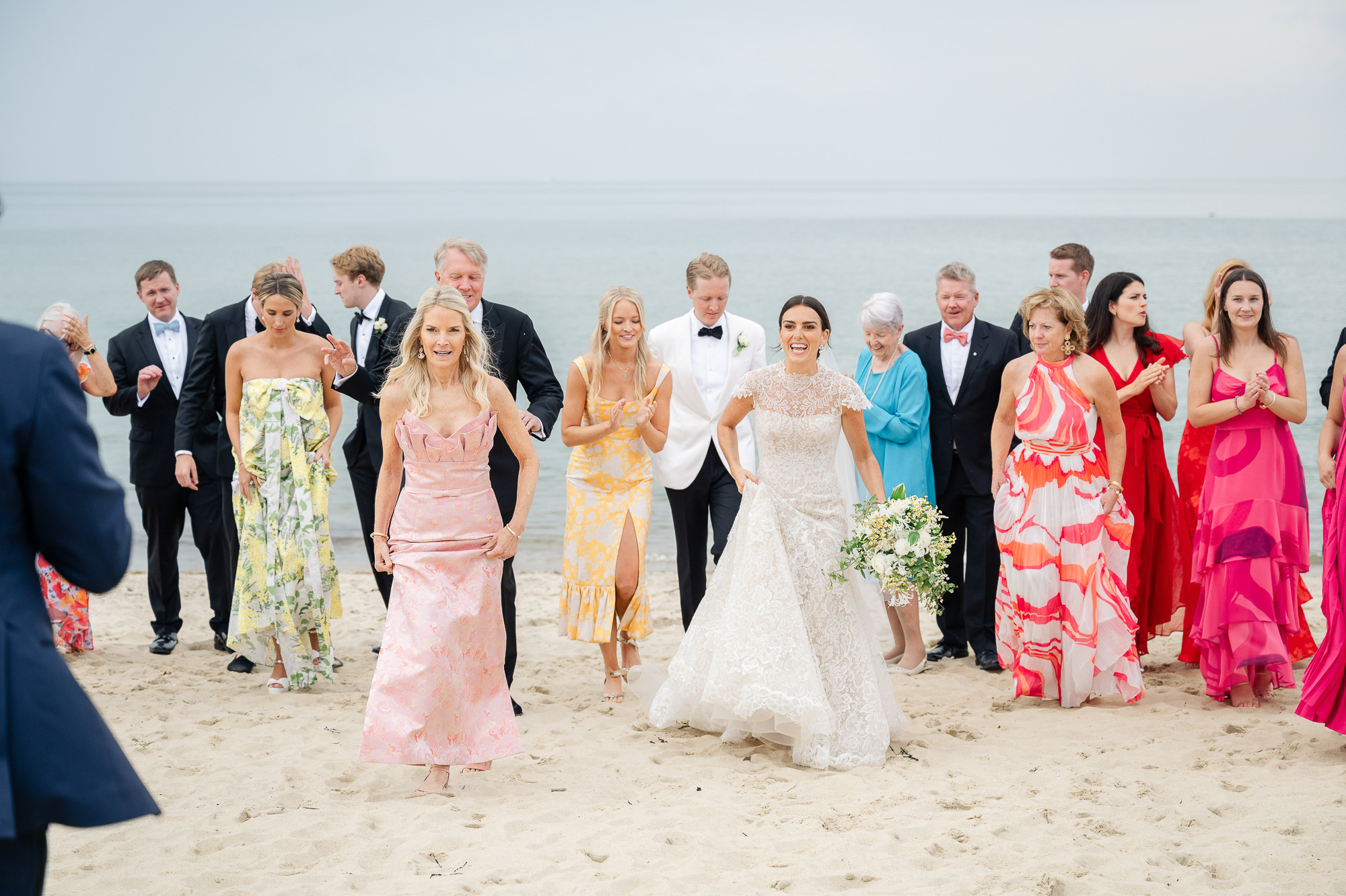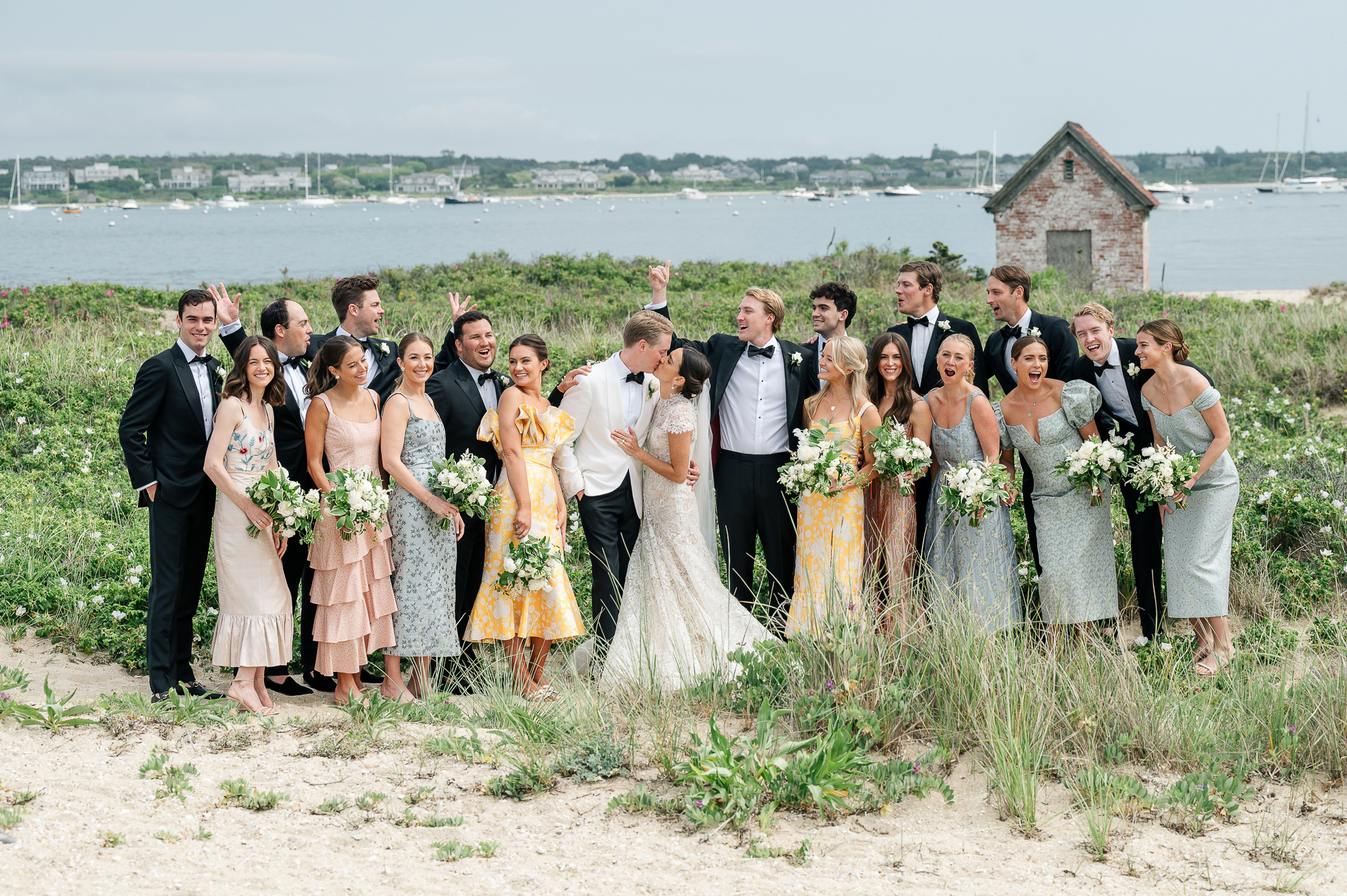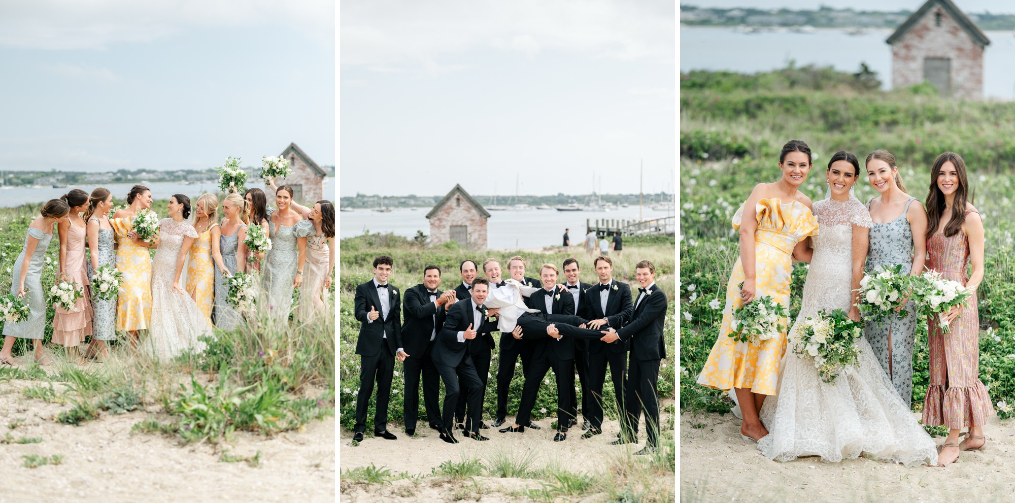 Caroline & Conor’s welcome party kicked off a big, fun weekend for their wedding guests. Hosted by Caroline’s parents in their home, guests played lawn games and enjoyed cocktails while getting excited for the big day. Their rehearsal dinner took place at the Great Harbor Yacht Club. They were married at St. Mary’s Church on a stunning day. Following the ceremony, we went to Brant Point for family and wedding party portraits before the couple set off to my favorite location in the dunes, overlooking their reception venue, Galley Beach. An after party topped off the night at Cru.
