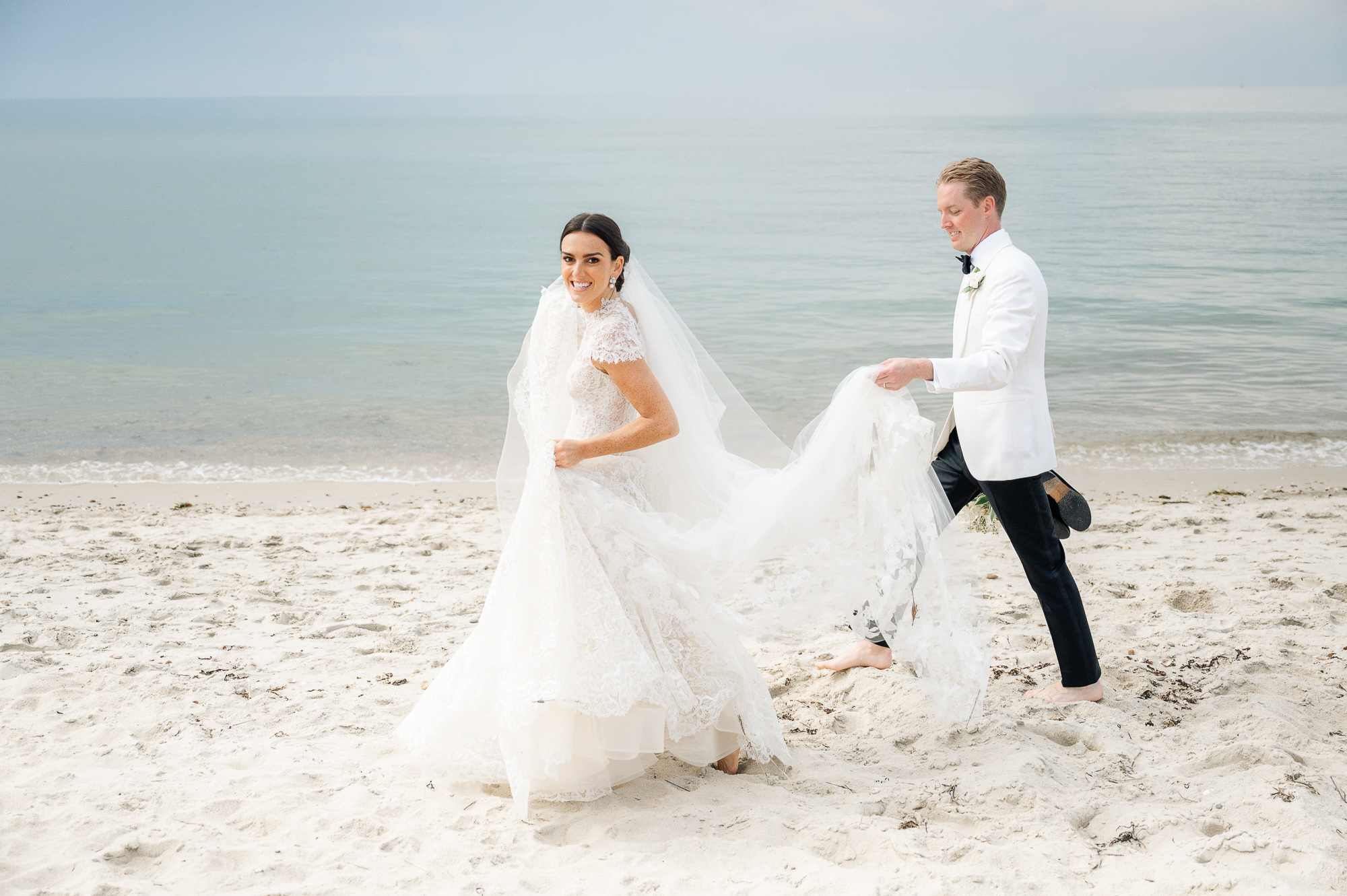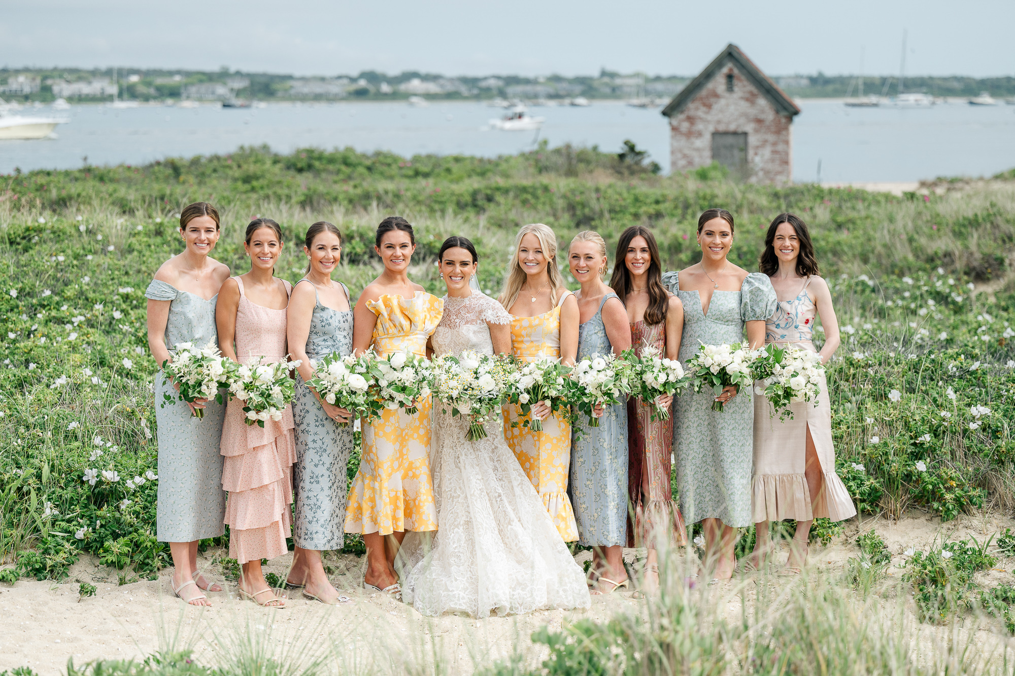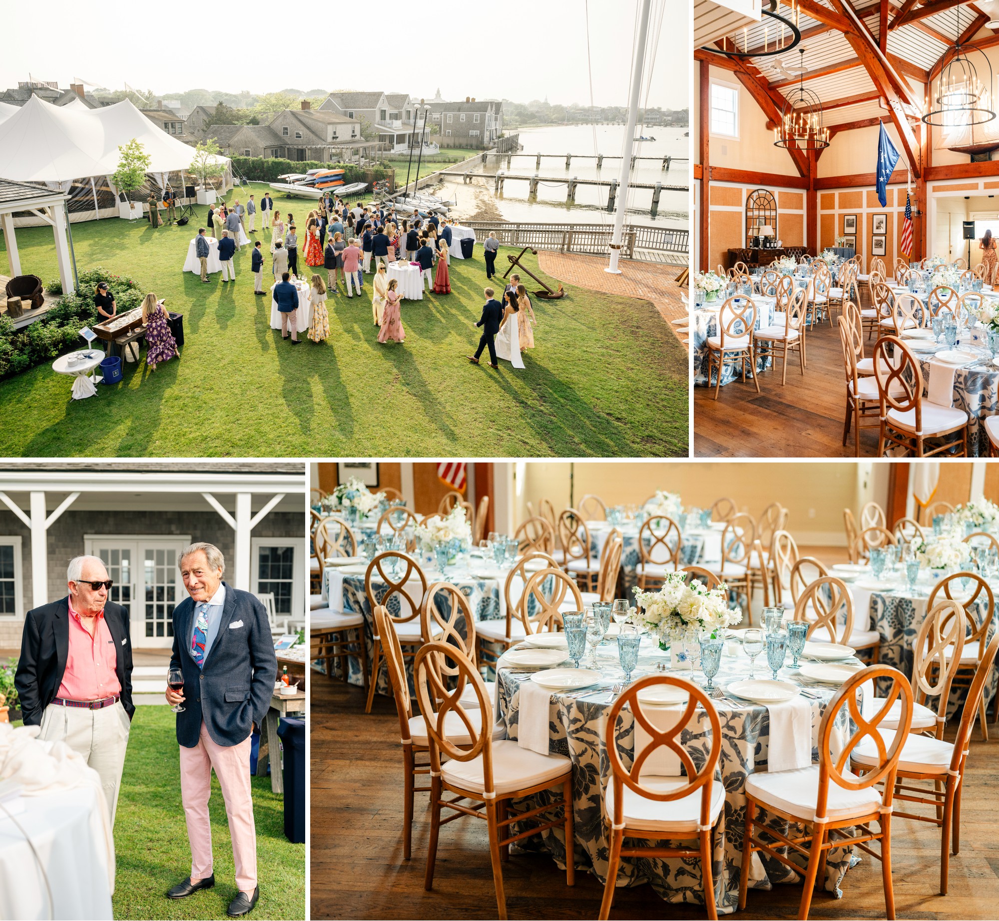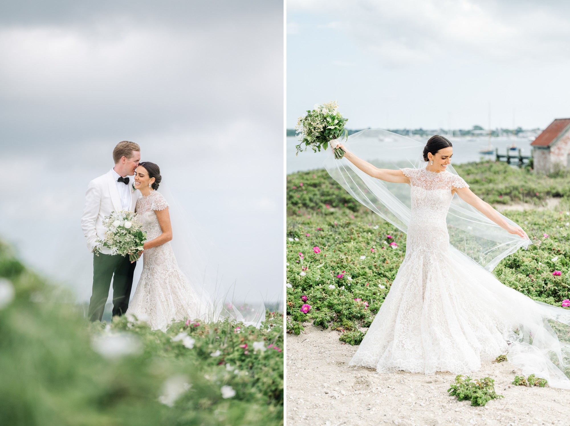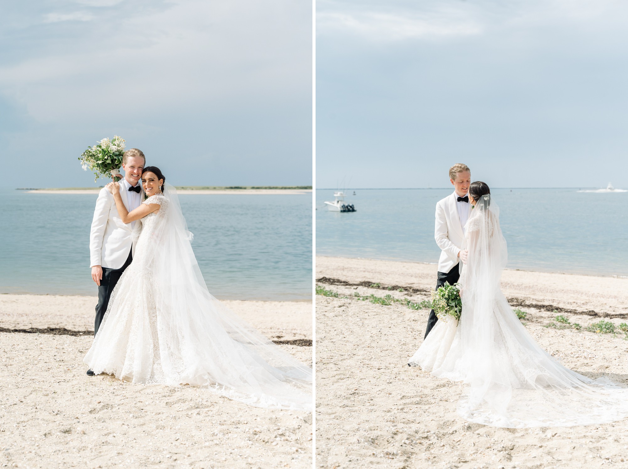 Caroline & Conor’s welcome party kicked off a big, fun weekend for their wedding guests. Hosted by Caroline’s parents in their home, guests played lawn games and enjoyed cocktails while getting excited for the big day. Their rehearsal dinner took place at the Great Harbor Yacht Club. They were married at St. Mary’s Church on a stunning day. Following the ceremony, we went to Brant Point for family and wedding party portraits before the couple set off to my favorite location in the dunes, overlooking their reception venue, Galley Beach. An after party topped off the night at Cru.