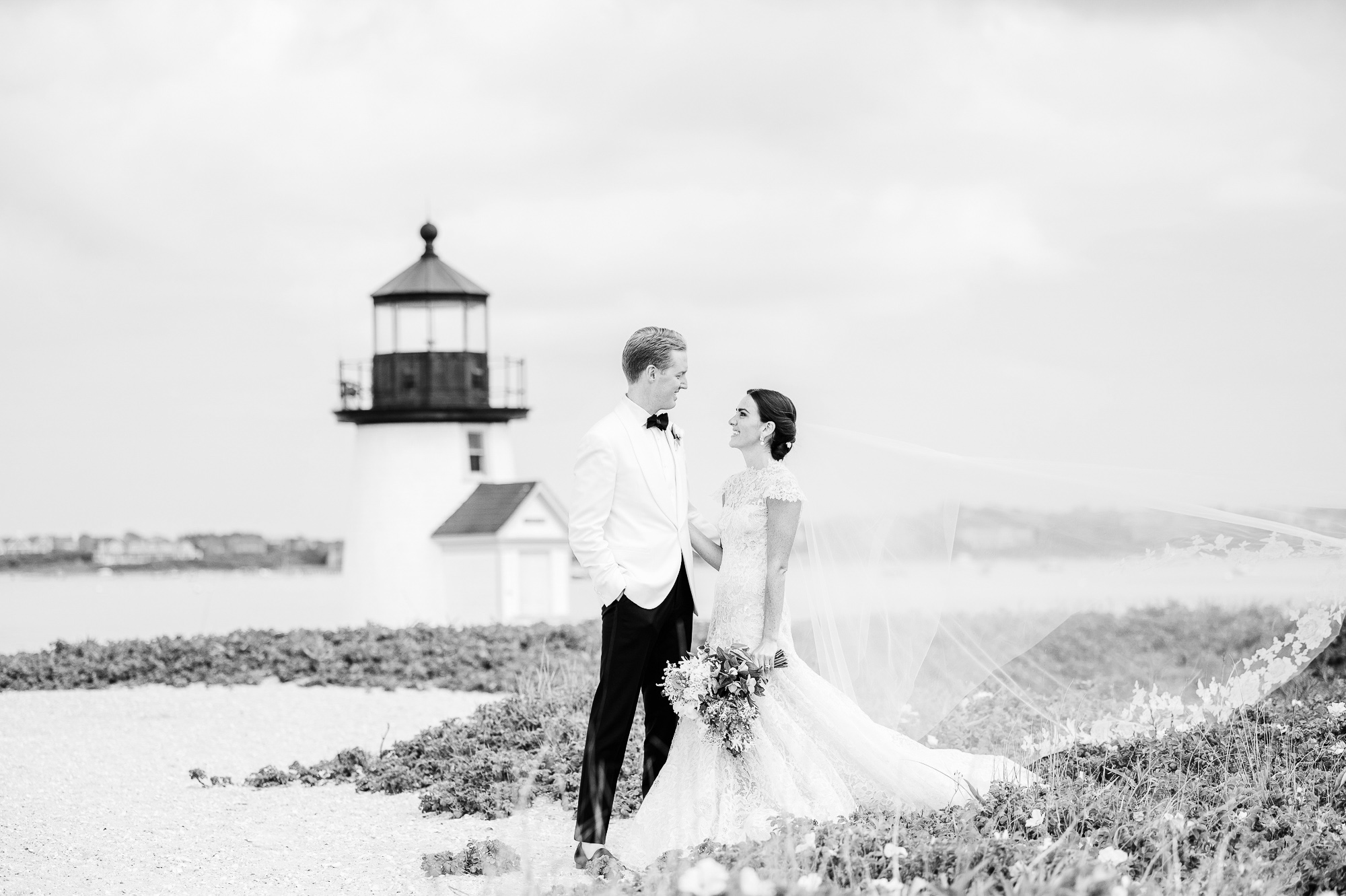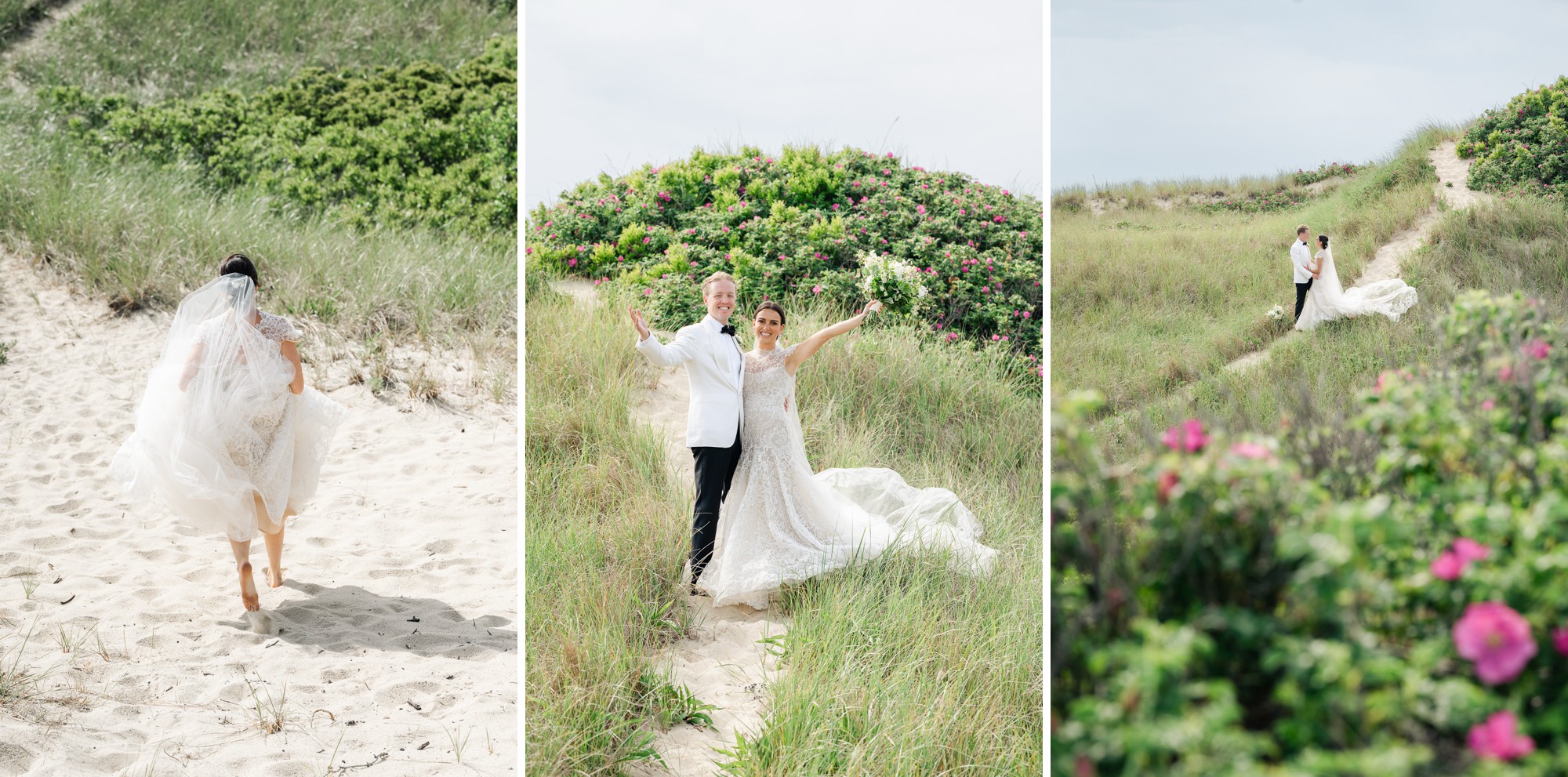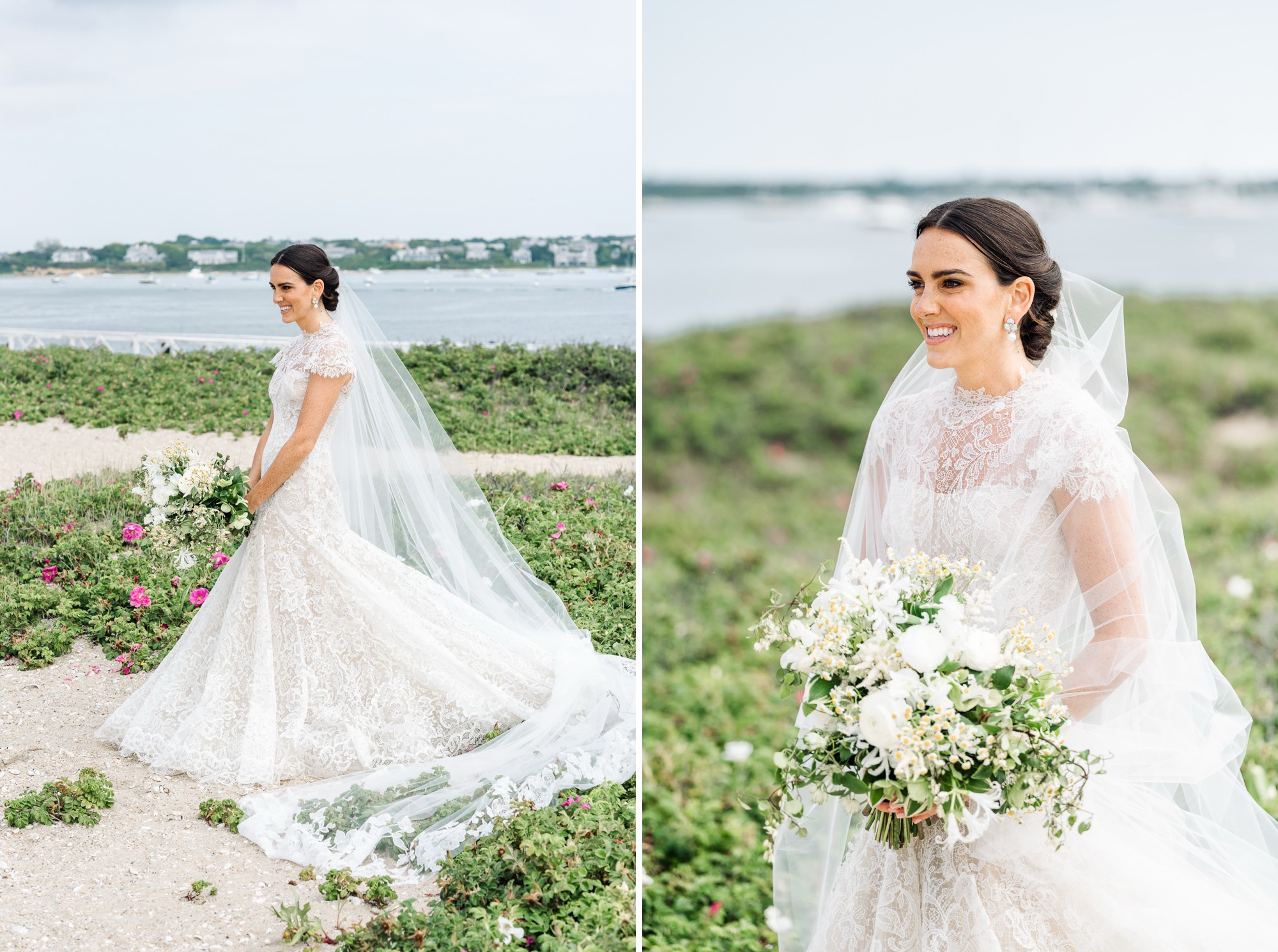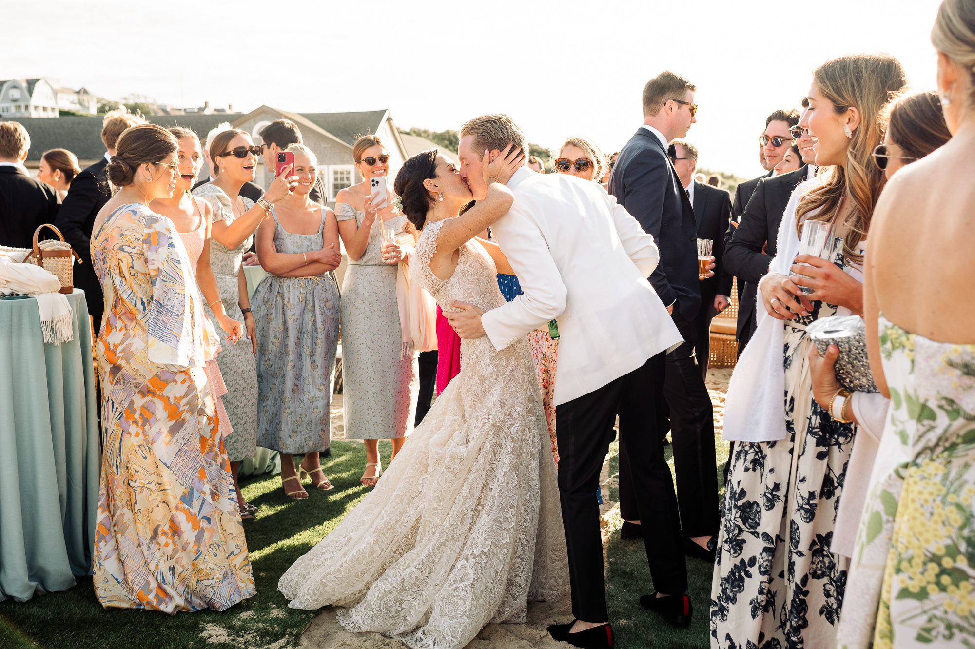 Caroline & Conor’s welcome party kicked off a big, fun weekend for their wedding guests. Hosted by Caroline’s parents in their home, guests played lawn games and enjoyed cocktails while getting excited for the big day. Their rehearsal dinner took place at the Great Harbor Yacht Club. They were married at St. Mary’s Church on a stunning day. Following the ceremony, we went to Brant Point for family and wedding party portraits before the couple set off to my favorite location in the dunes, overlooking their reception venue, Galley Beach. An after party topped off the night at Cru.