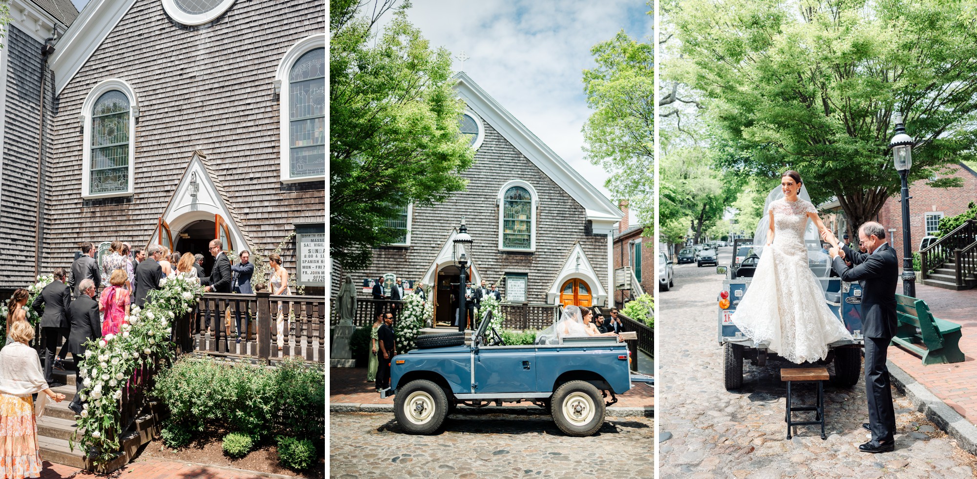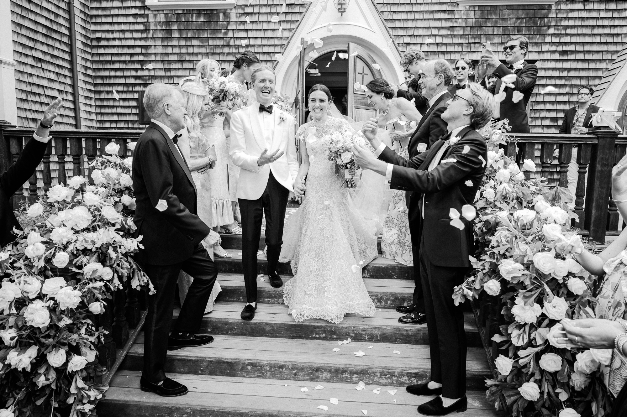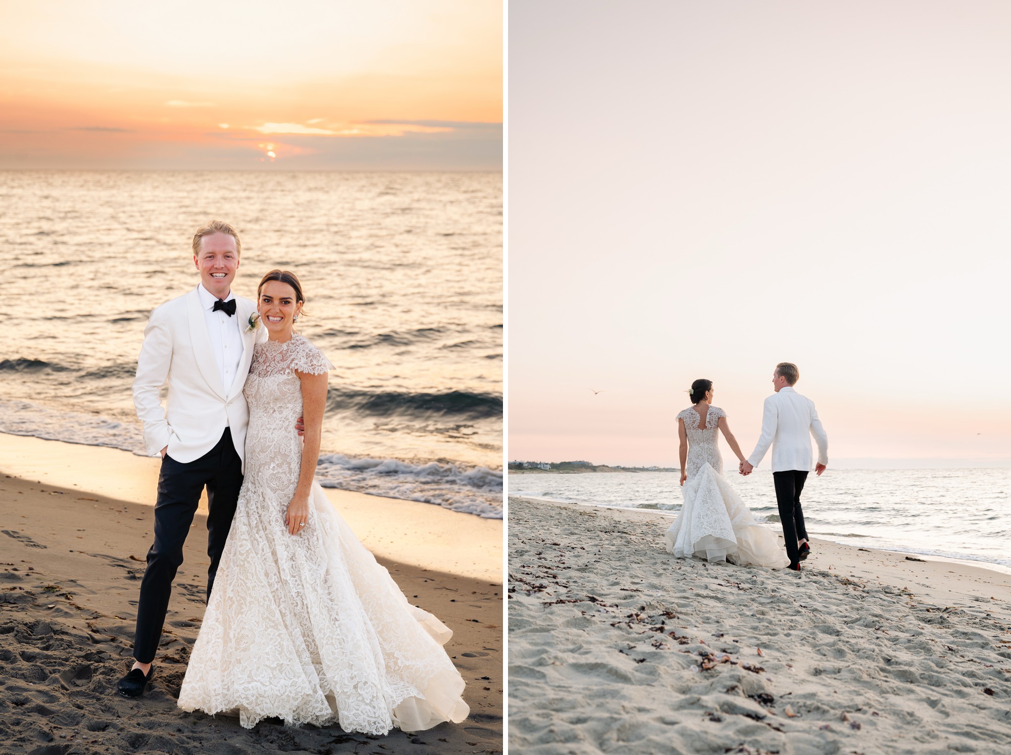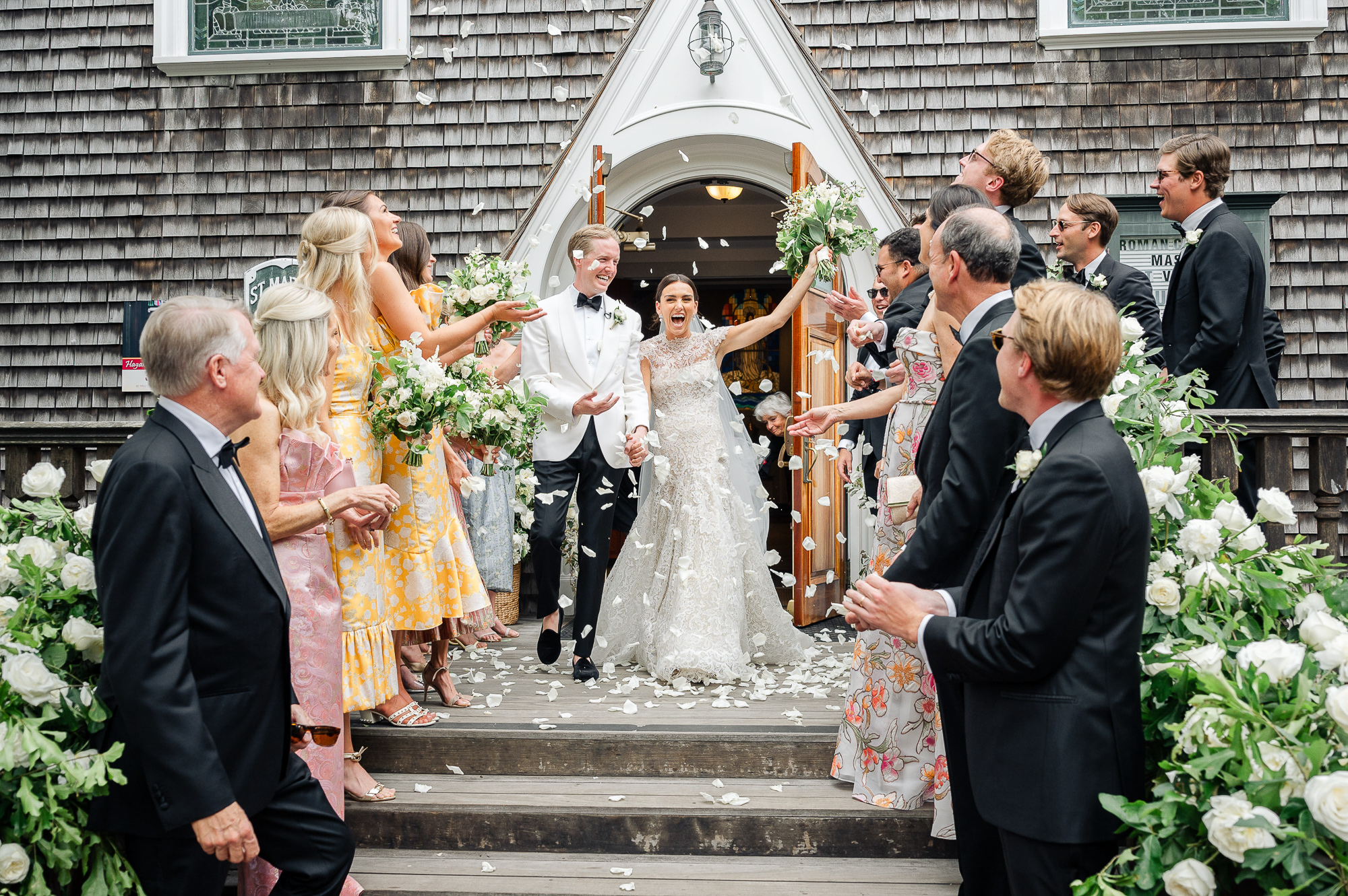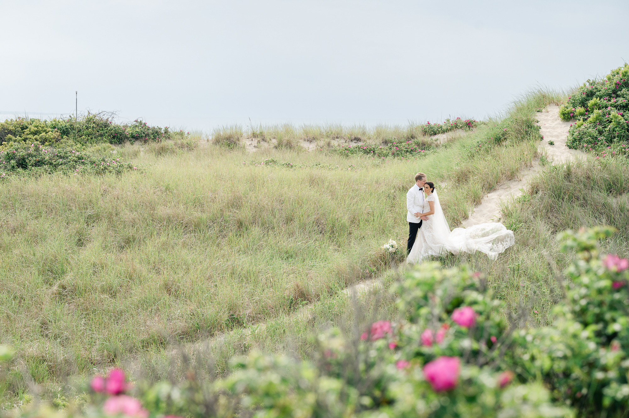 Caroline & Conor’s welcome party kicked off a big, fun weekend for their wedding guests. Hosted by Caroline’s parents in their home, guests played lawn games and enjoyed cocktails while getting excited for the big day. Their rehearsal dinner took place at the Great Harbor Yacht Club. They were married at St. Mary’s Church on a stunning day. Following the ceremony, we went to Brant Point for family and wedding party portraits before the couple set off to my favorite location in the dunes, overlooking their reception venue, Galley Beach. An after party topped off the night at Cru.