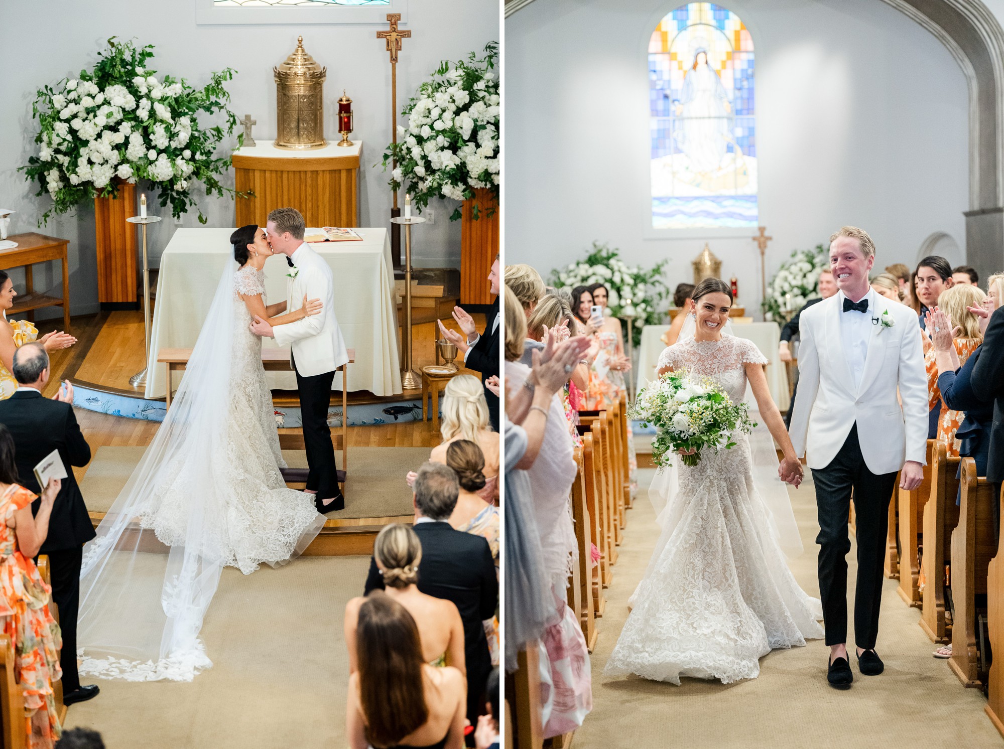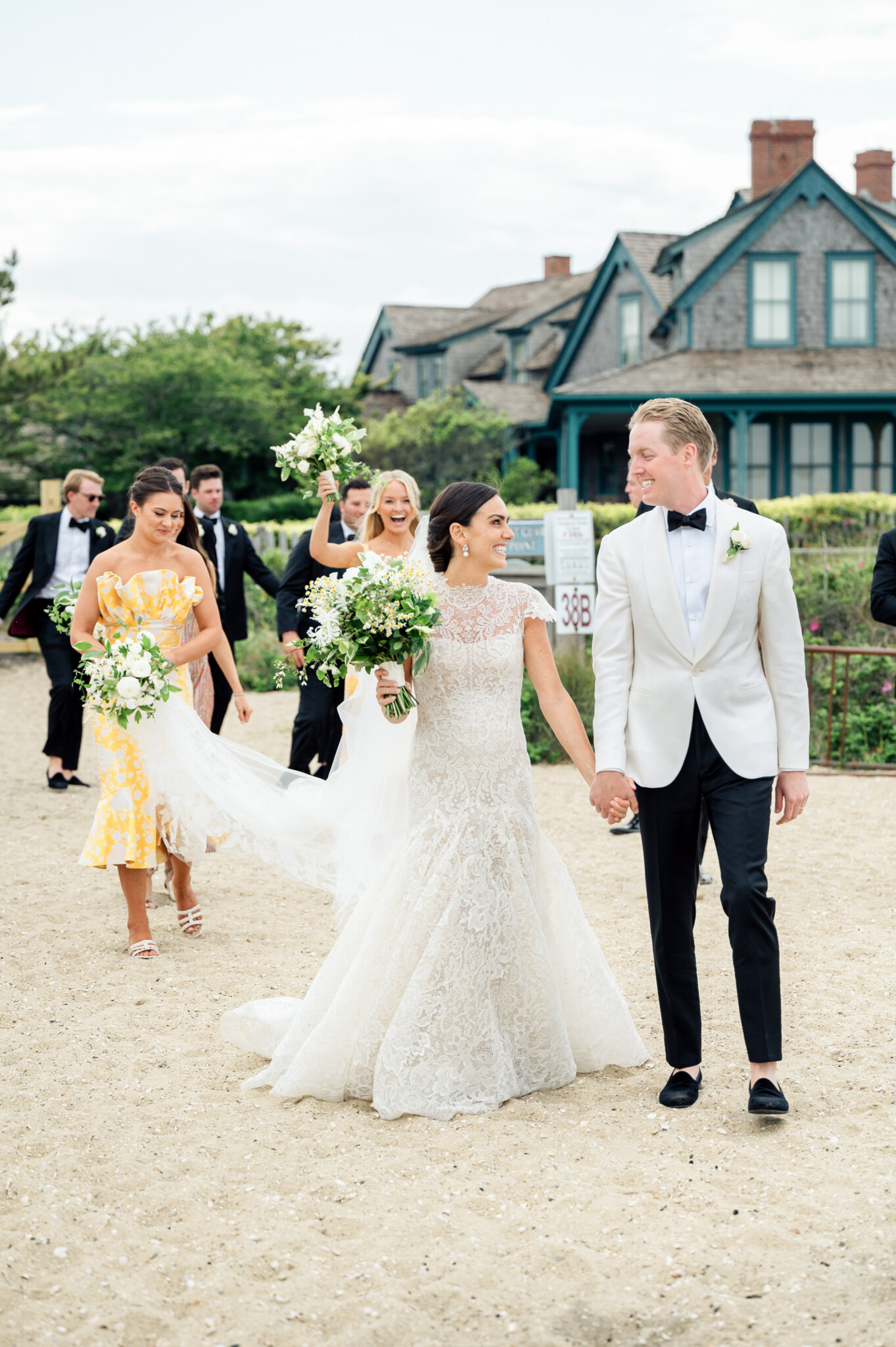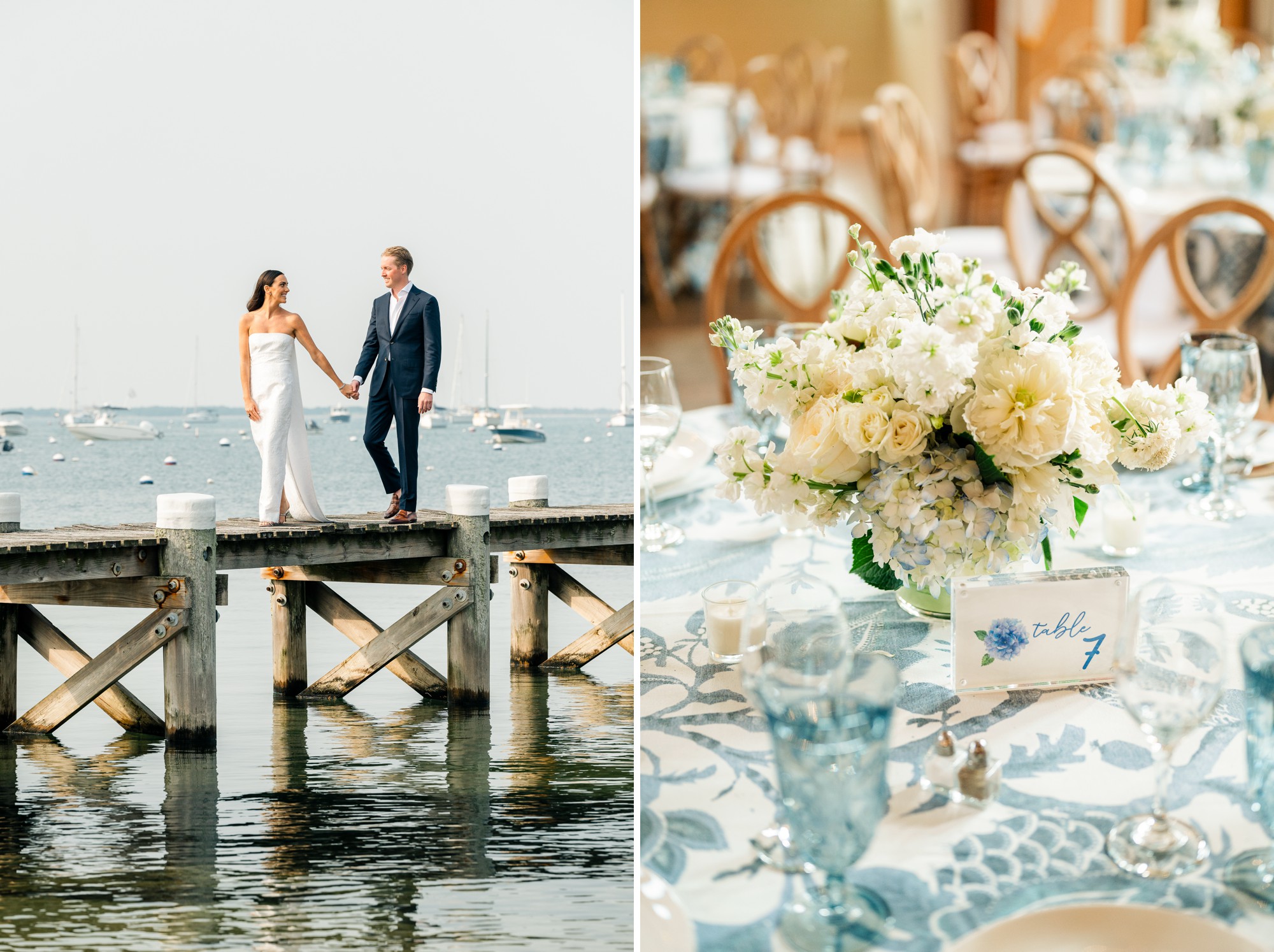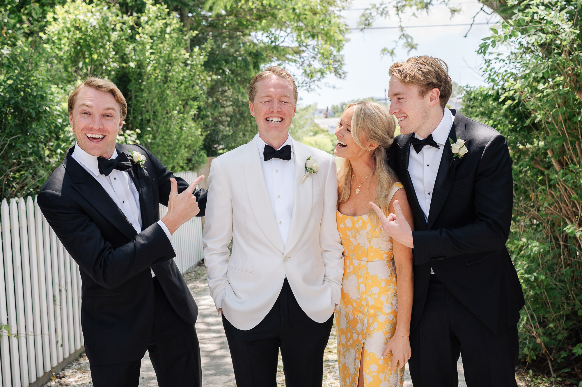 Caroline & Conor’s welcome party kicked off a big, fun weekend for their wedding guests. Hosted by Caroline’s parents in their home, guests played lawn games and enjoyed cocktails while getting excited for the big day. Their rehearsal dinner took place at the Great Harbor Yacht Club. They were married at St. Mary’s Church on a stunning day. Following the ceremony, we went to Brant Point for family and wedding party portraits before the couple set off to my favorite location in the dunes, overlooking their reception venue, Galley Beach. An after party topped off the night at Cru.